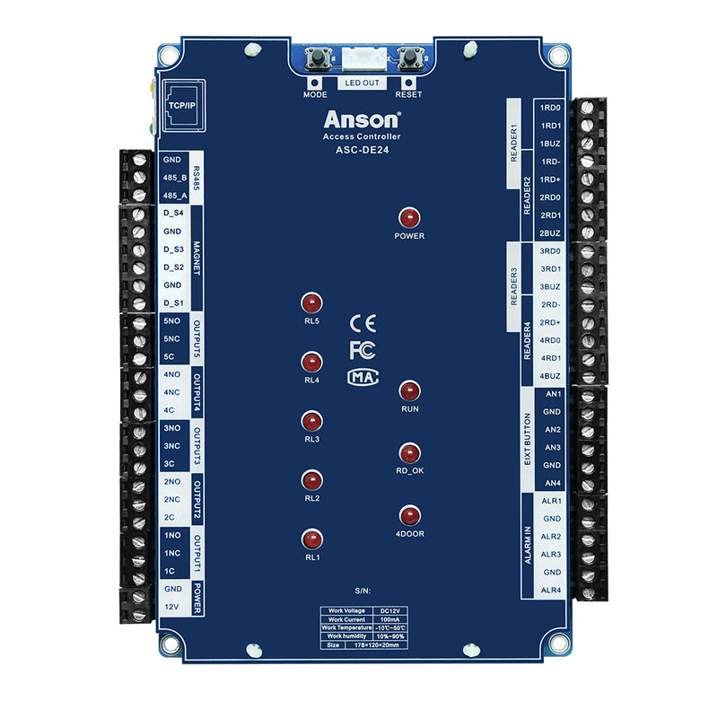 Reply: TCP / IP communication mode, Recognition mode can be Fingerprint / card. And it also includes Wiegand output, alarm input and output, door-magnet, lock, tamper, exit button and so on. Any question, please contact us freely.