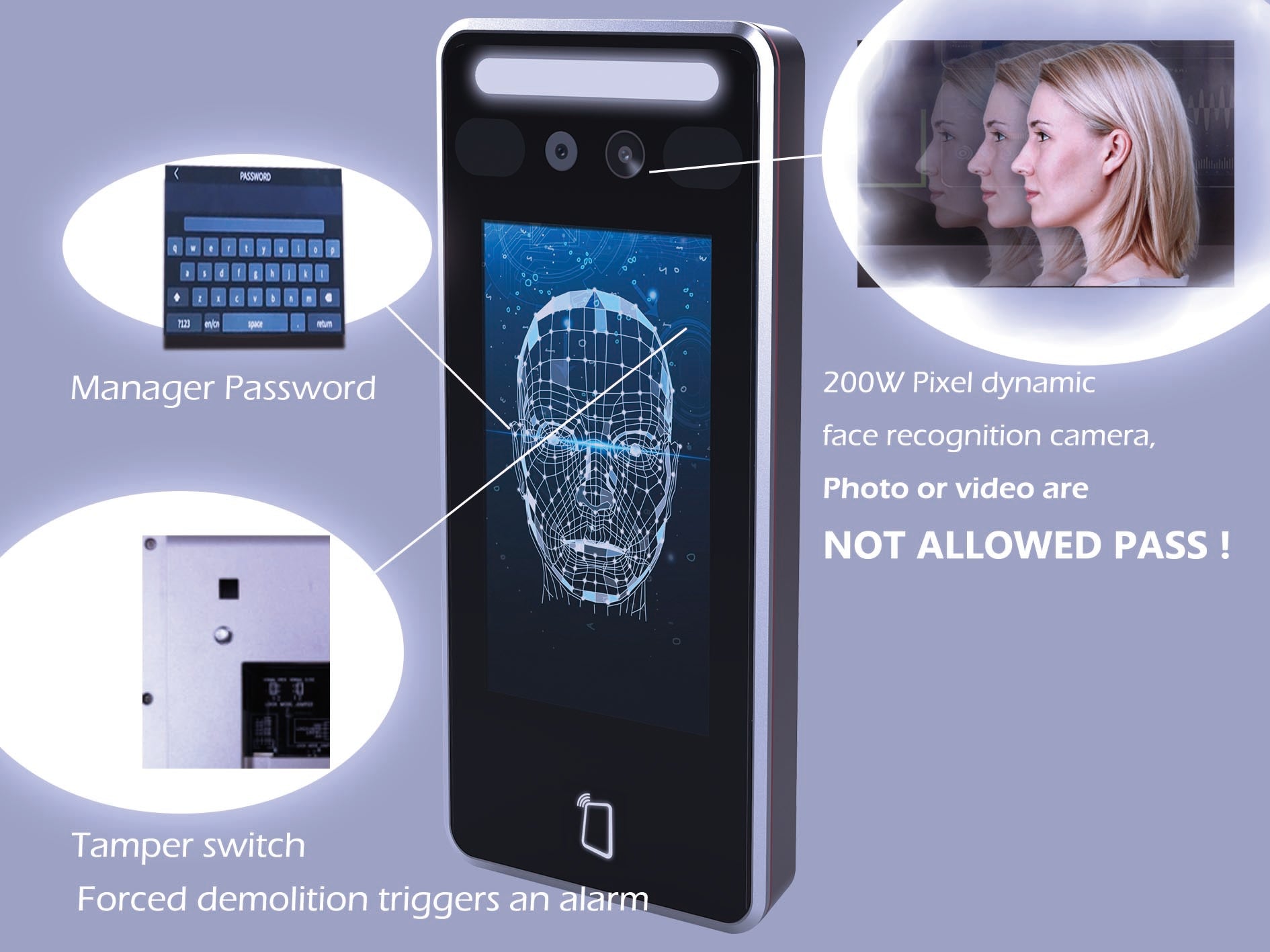 200W Pixel dynamic face recognition camera. Photo or video are not allowed pass!